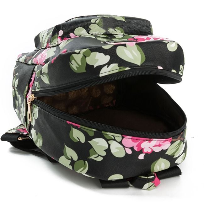 The floral print backpack will be useful for both lectures and outings.