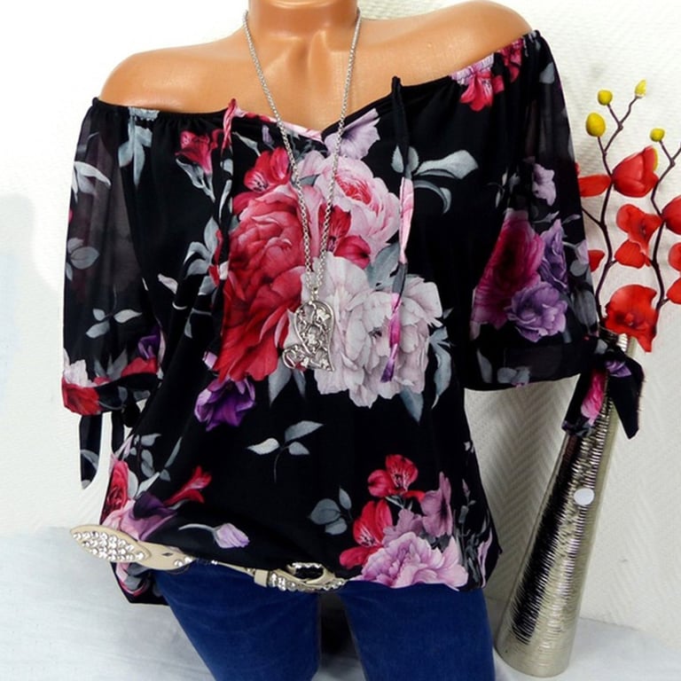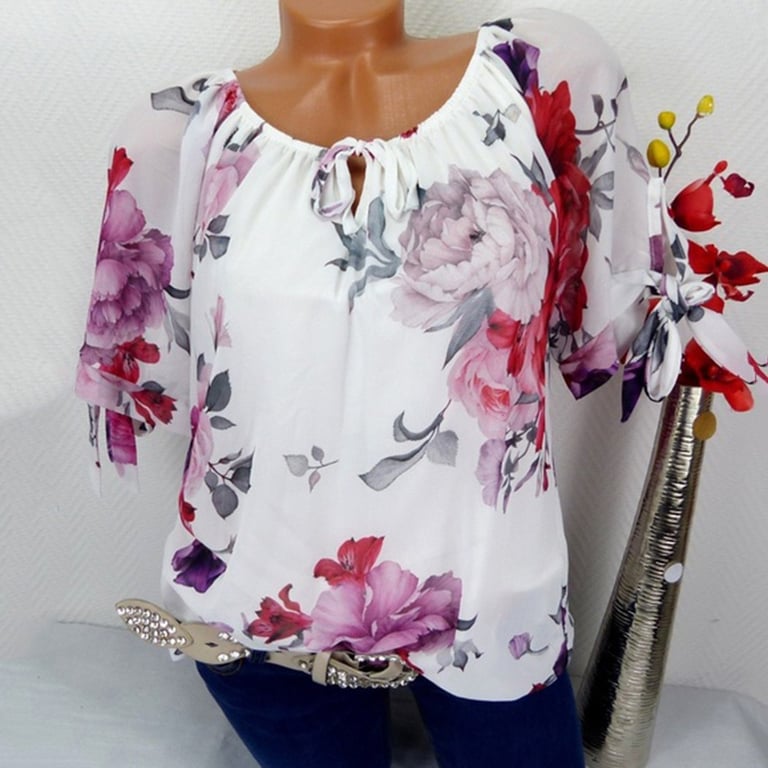 Women's top with short sleeves that tie in a bow. Beautiful floral pattern, available in two colour variants.