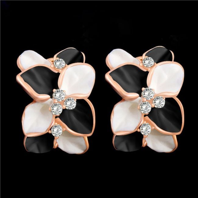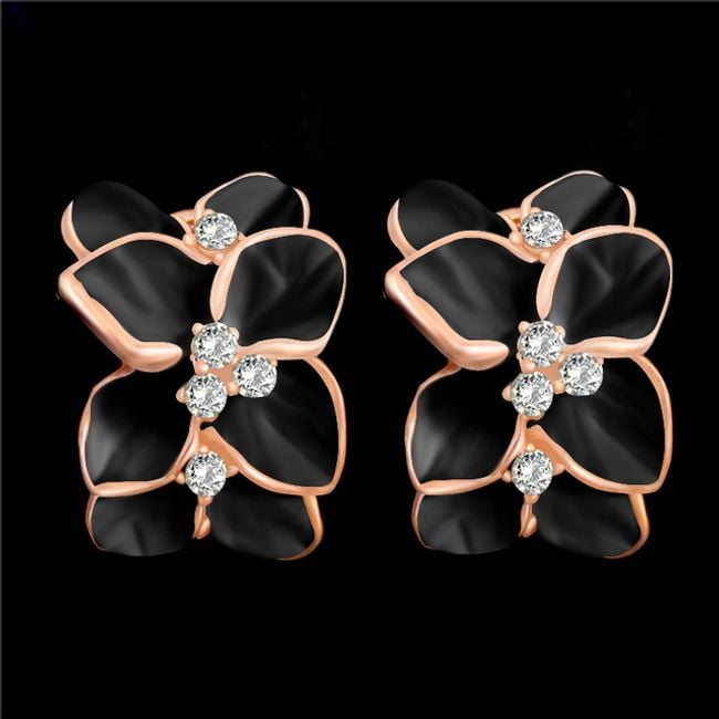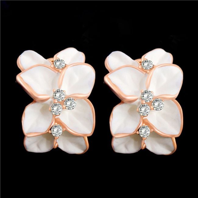 Women's floral earrings with clear costume jewellery stones.