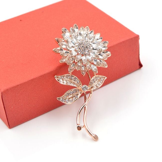 Elegant ladies' brooch with gemstones in the shape of a flower.