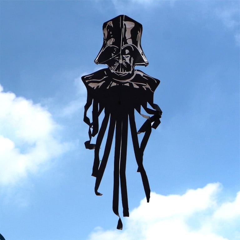 Flying 3D kite Darth Vader from the Star Wars movie.