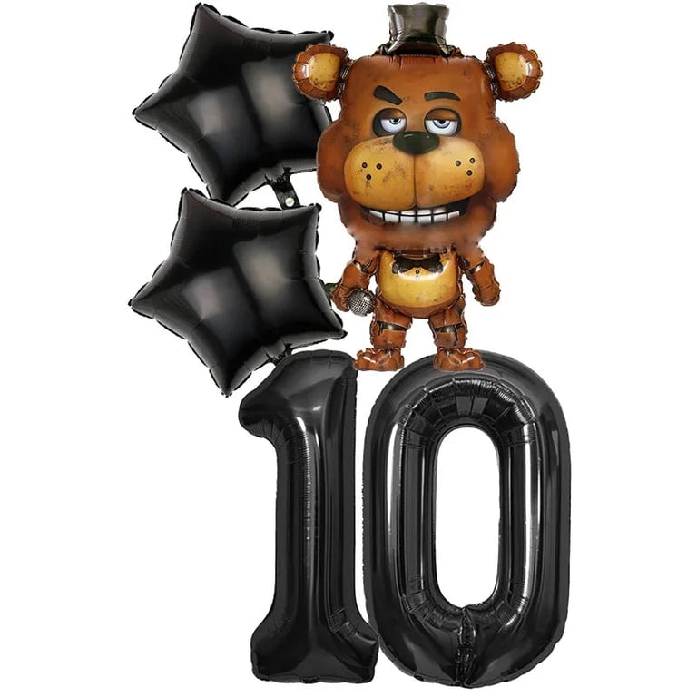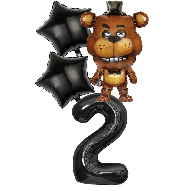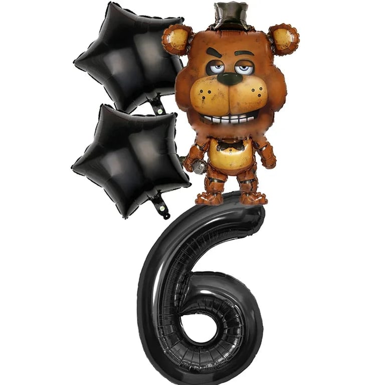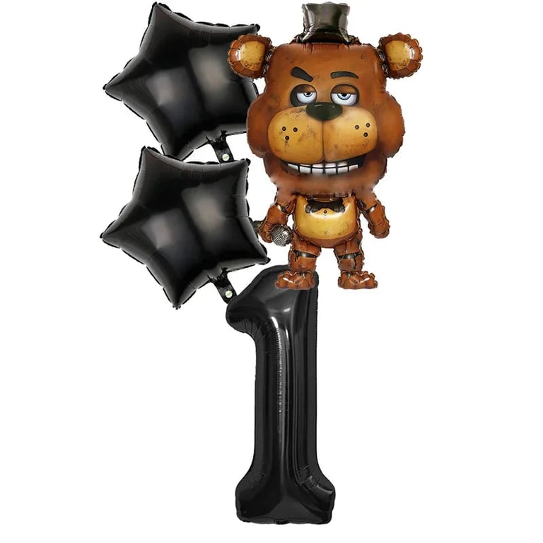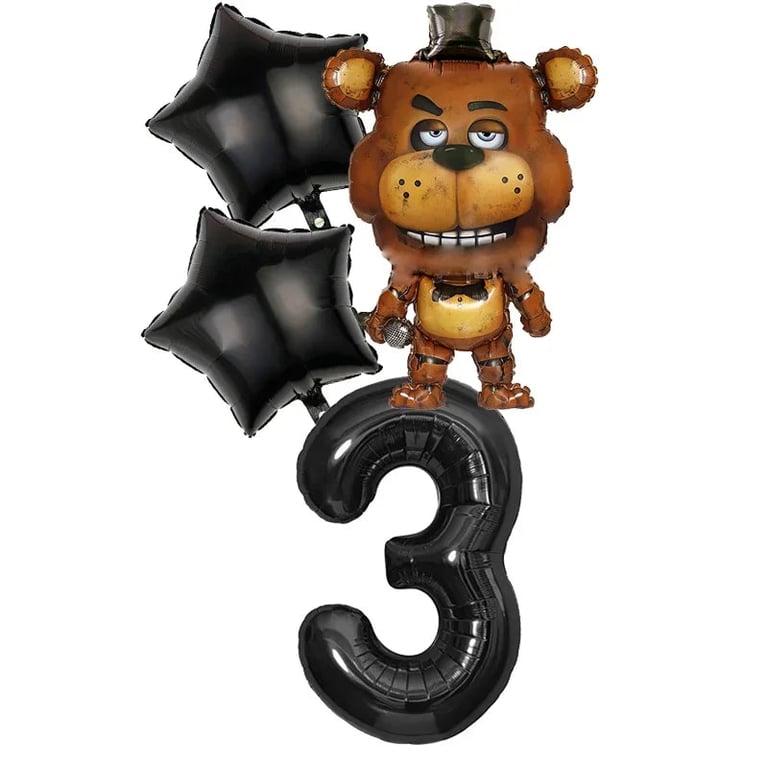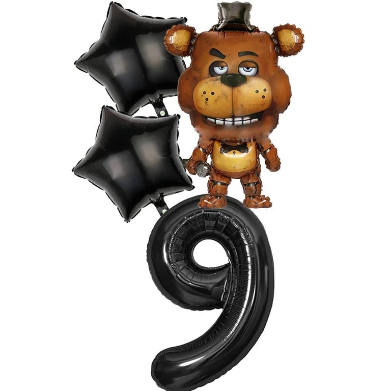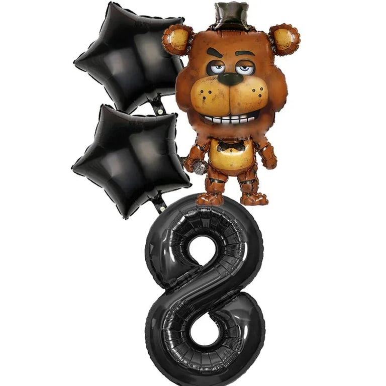 Birthday party set with Five Nights at Freddy's balloons.