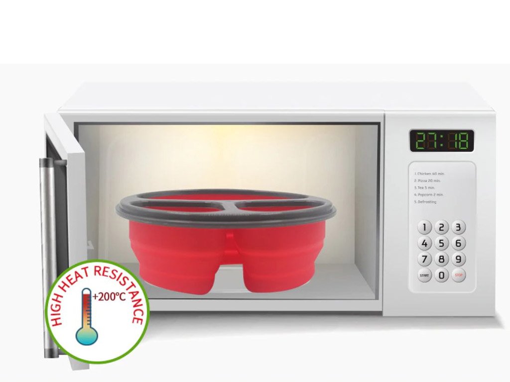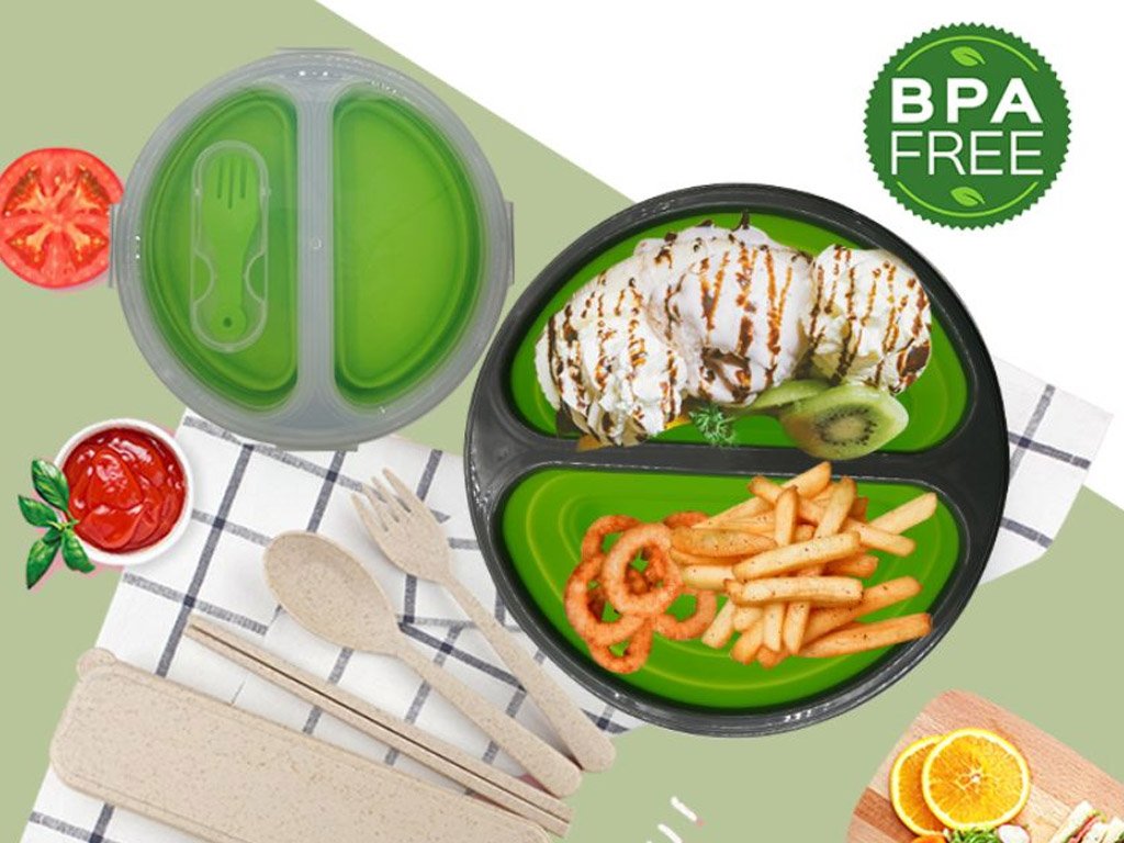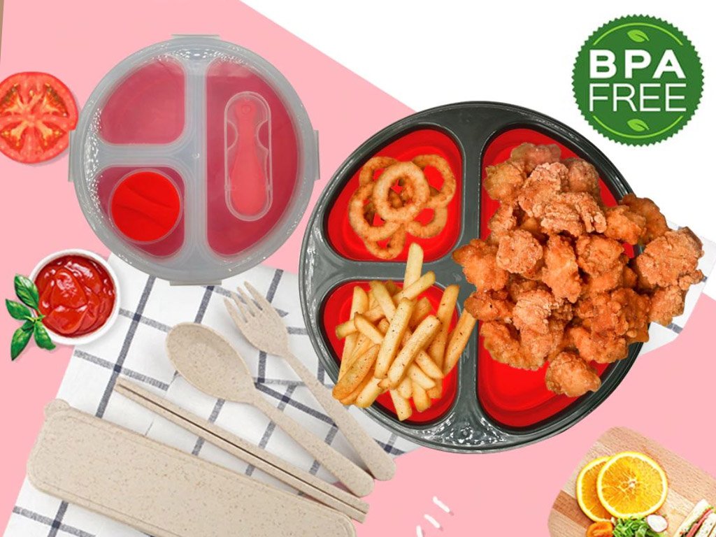 Foldable lunch plates can be used every day for carrying lunches to work or school; you can place meat or sides in each compartment, just as you like. After washing, you can cleverly fold the plates like an accordion. An ideal gift for anyone who brings food to work!