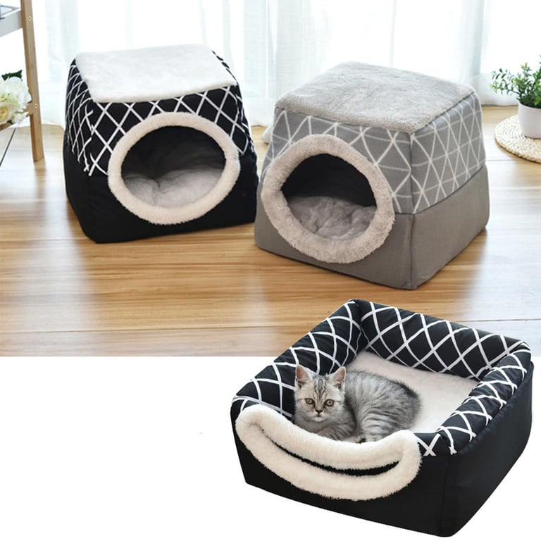 A practical pet bed that you can transform into an enclosed house.