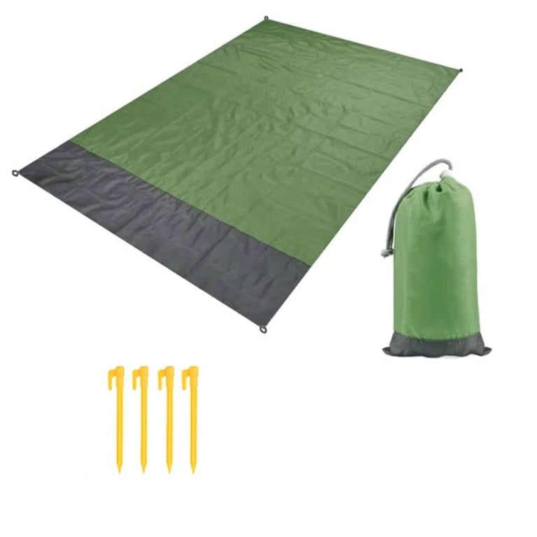 This folding picnic blanket is ideal for a day at the beach or camping. It is made of nylon, is waterproof, and the package also includes four pegs to keep it in place. It easily folds up, making it portable and convenient to take with you wherever you go.