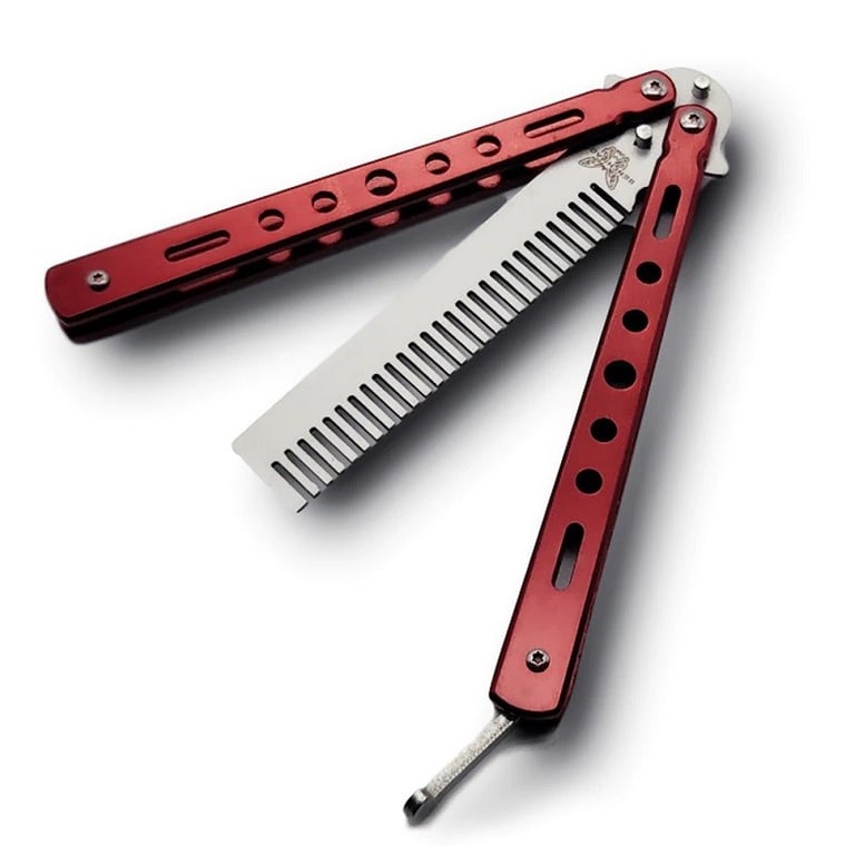 The training butterfly knife - comb is ideal for beginners when grooming beards and hair. It has a length of 21 cm. Made of stainless steel, which makes it resistant to damage.
