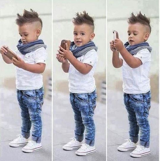 Formal boys' children's set of jeans and t-shirt.