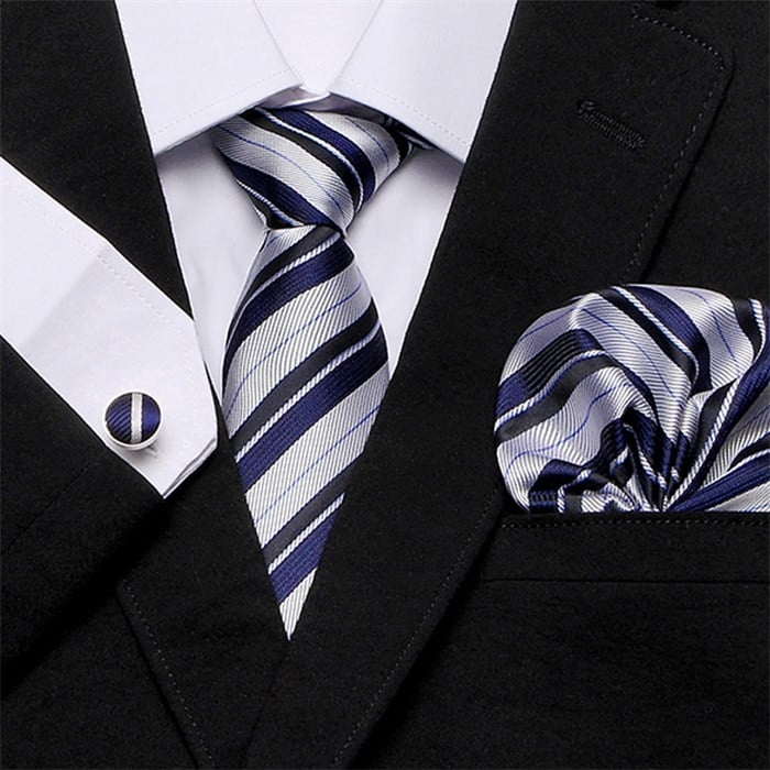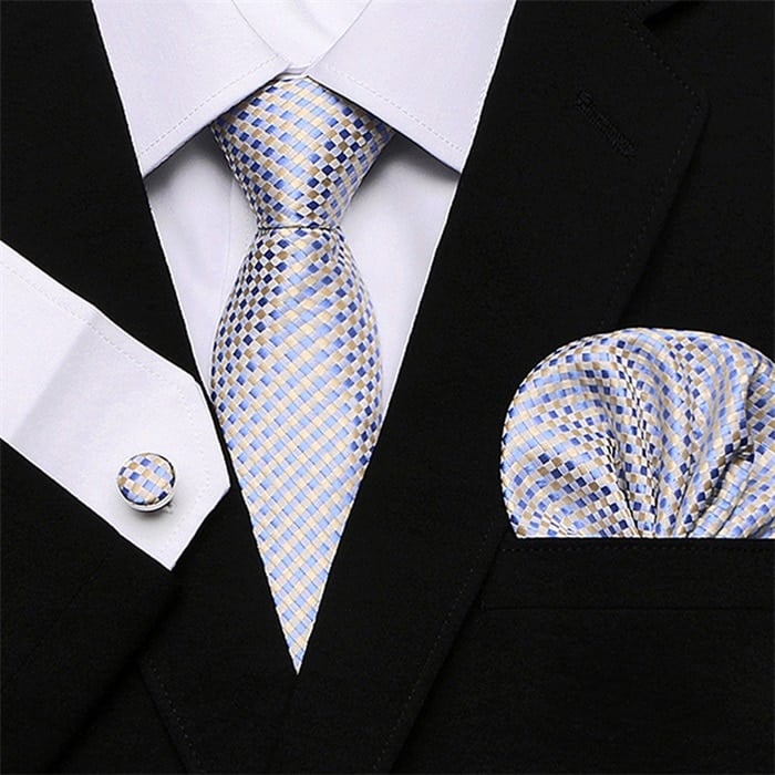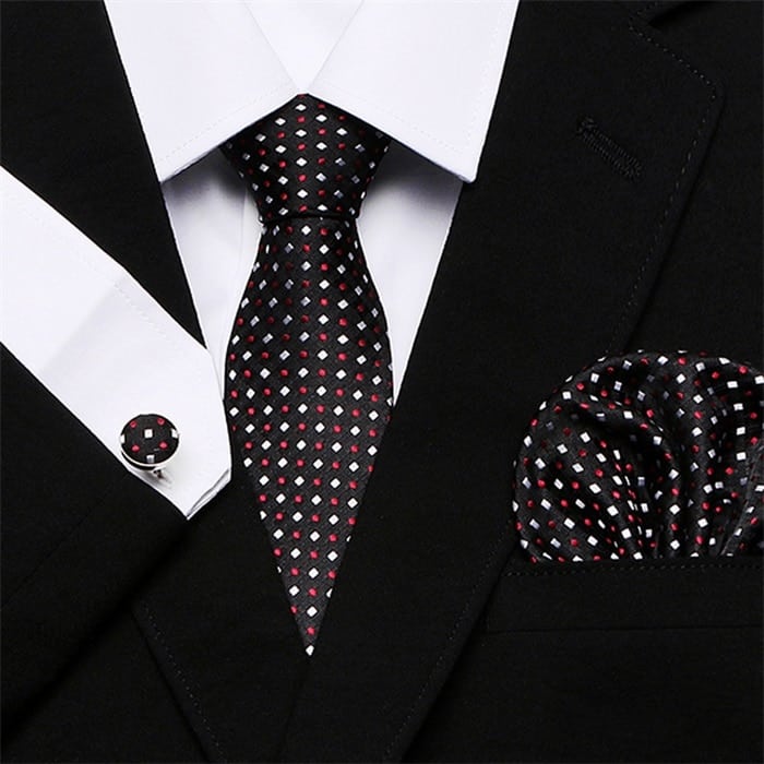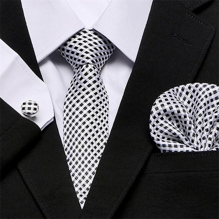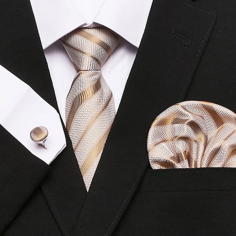 • Package Contents: 1 x set – Tie, Pocket Square, Cufflinks