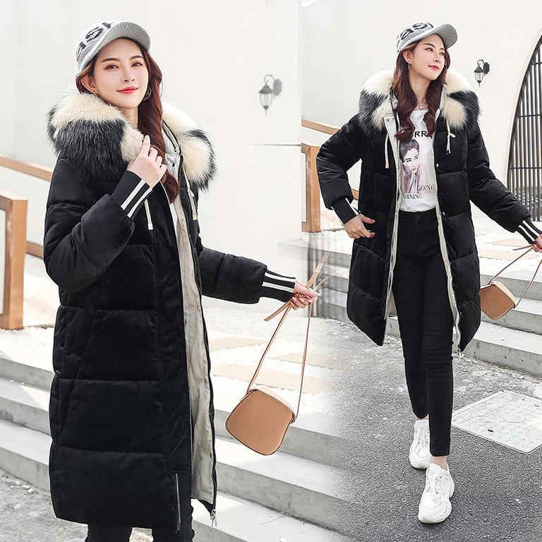 Stylish long coat in pleasant colours with an attractive fluffy collar.