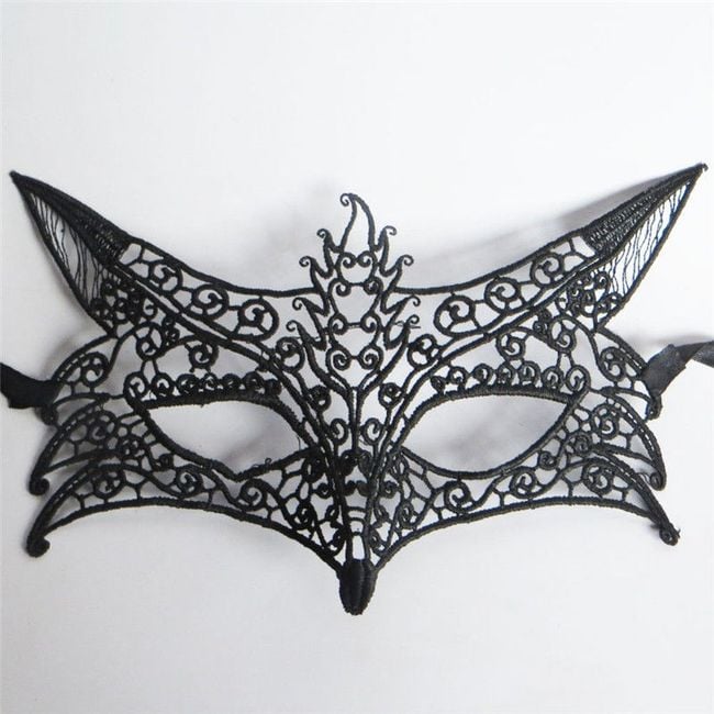 The mask is black, very stylish and suitable as an accessory for a costume for a masquerade or Halloween.