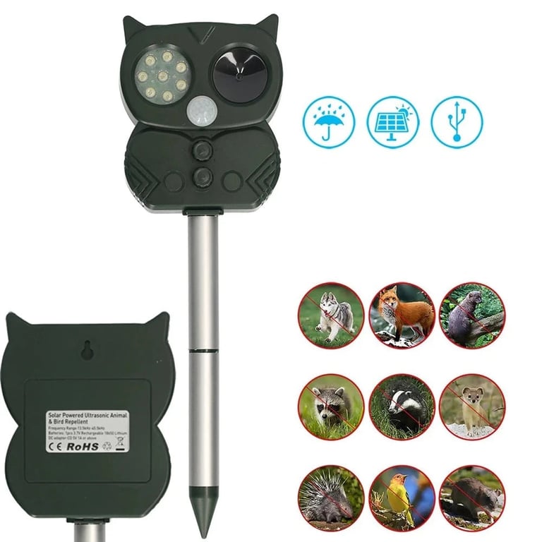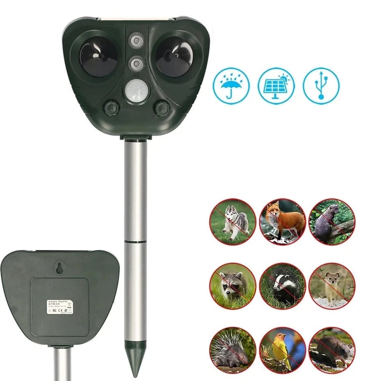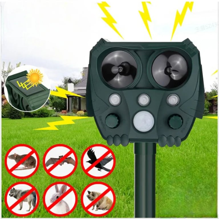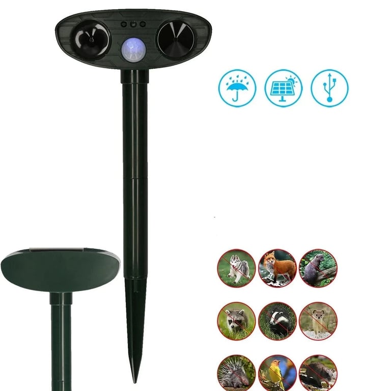 Multifunctional ultrasonic repeller for animals, birds, and rodents for the garden.