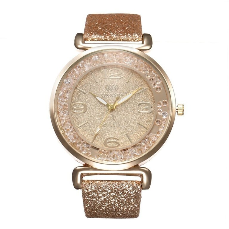 Women's watch with a sparkling strap. Dial with numbering in a metal frame.