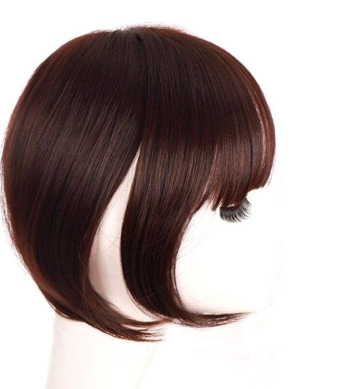 Made from high-quality synthetic fibres. The bangs hairpiece is a quick and easy way to achieve a perfect hairstyle without cutting your hair. It can be trimmed to fit your face. Holds its shape.