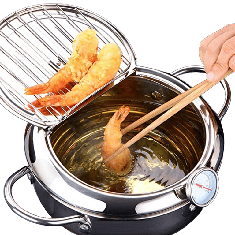 This frying pot is made of durable stainless steel. Therefore, it is perfect for frying. This pot is suitable for all types of cookers. The pot also has a thermometer, which allows you to monitor the temperature of the oil. Included with this pot is a removable rack that can drain excess fat from the food.