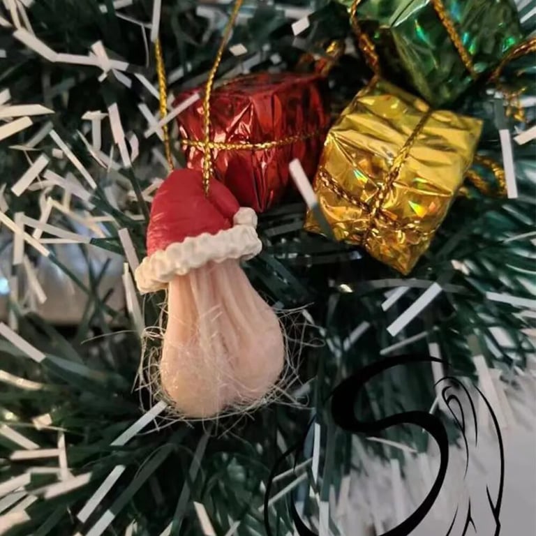 Funny Christmas tree decoration testicles.