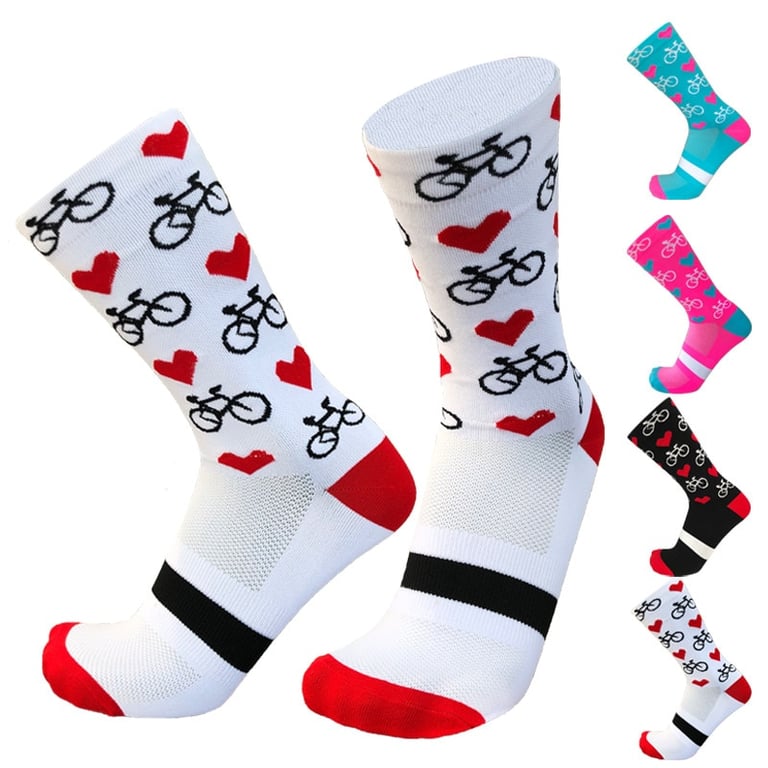 Looking for original socks for cycling? Here you have several colour options to choose from. The socks are adorned with bicycles and hearts. Therefore, they are ideal for all cycling enthusiasts. The socks are made from a pleasant material, so not only will you look stylish, but you'll also ride with ease.