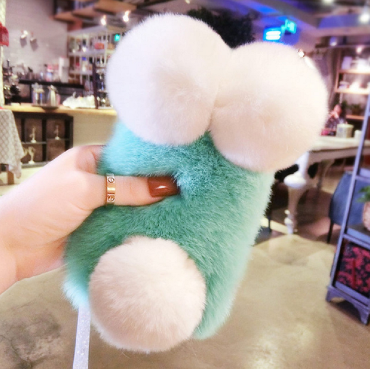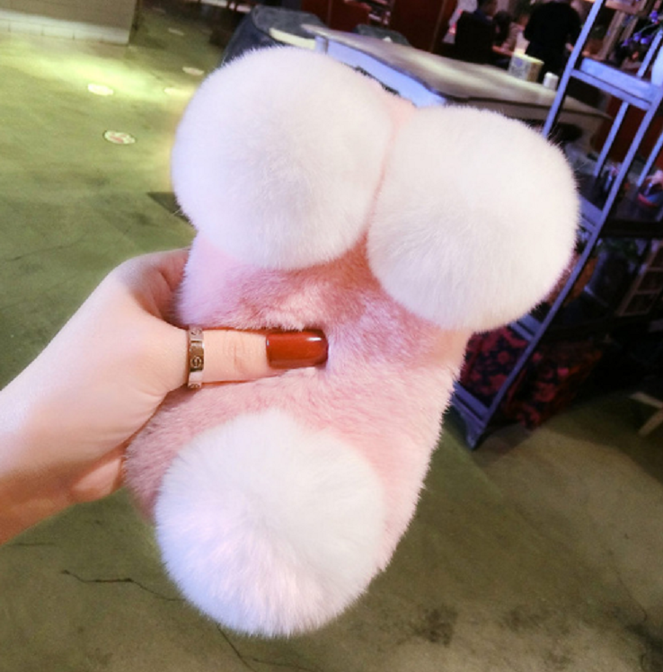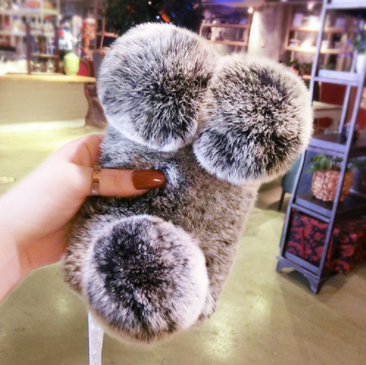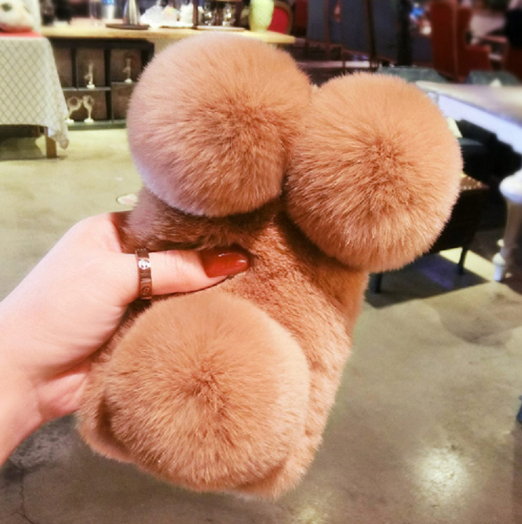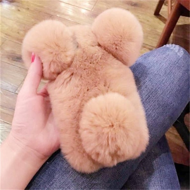 Beautiful fluffy case shaped like a cute teddy bear with ears and a tail.