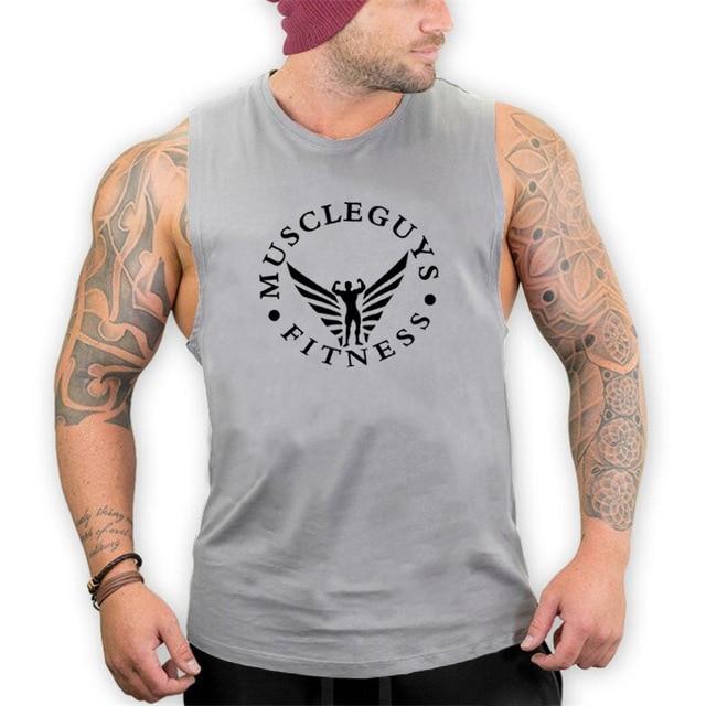 Sporty men's tank top for exercise. Made from cotton, it absorbs sweat well. Suitable for all types of sports.