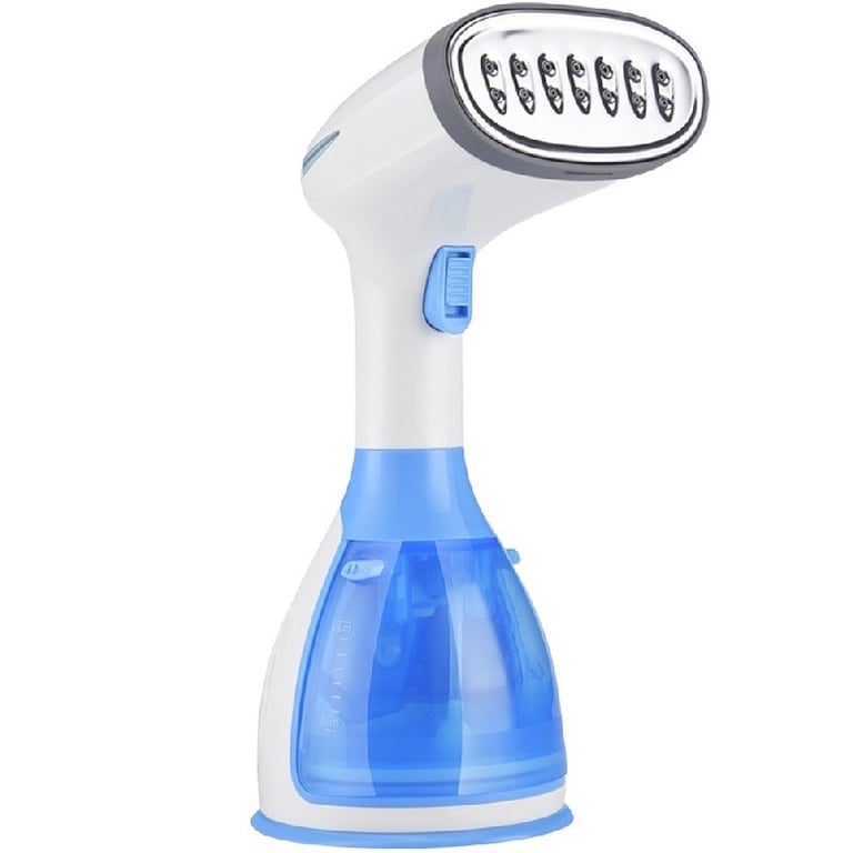 Package contents: 1x garment steamer, 1x water refill cup, 2x brush attachment