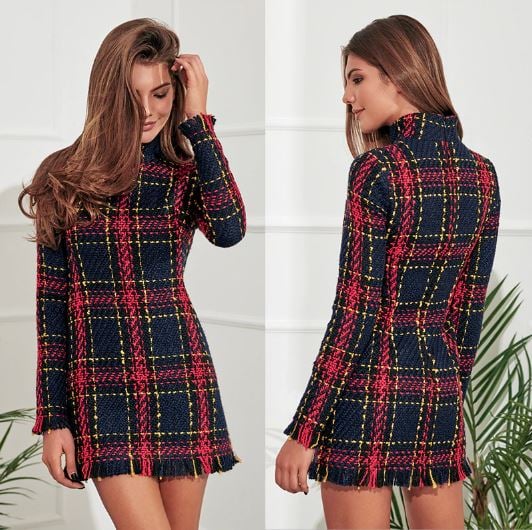 Gathered ribbed beautiful evening dress with long sleeves