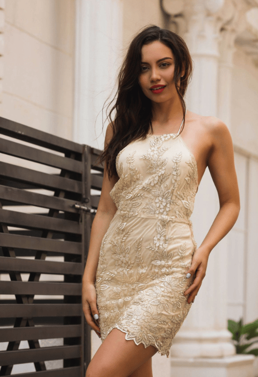 Gathered smooth women's summer dress with flowers