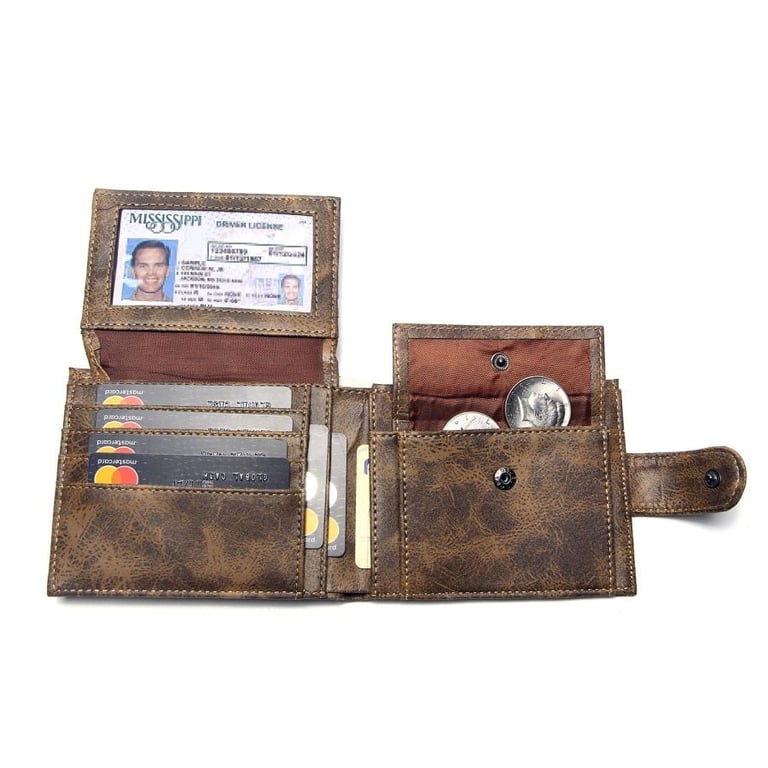 Men's wallet with a stylish design. It has many card slots and a small coin pocket.