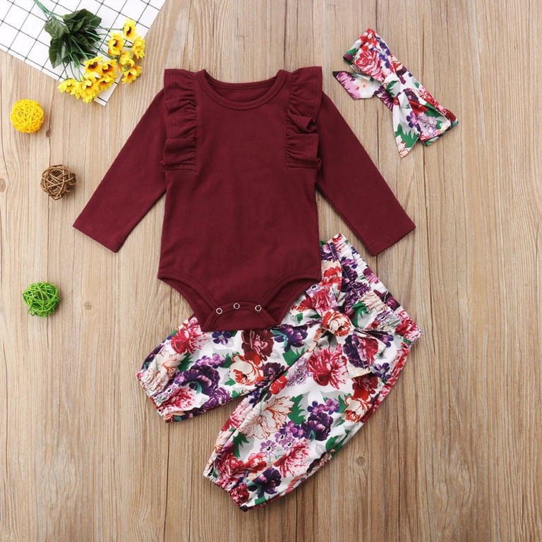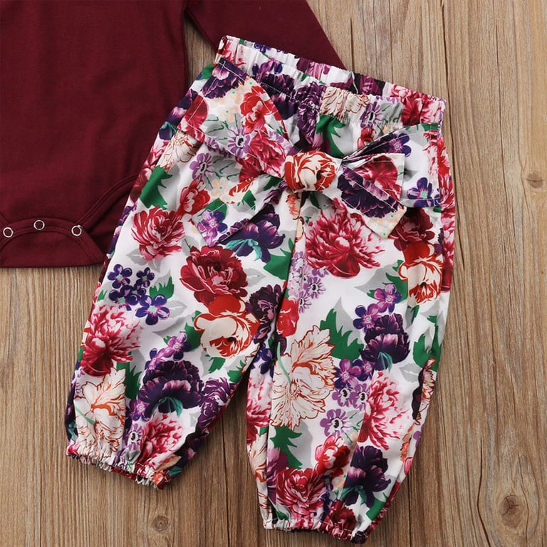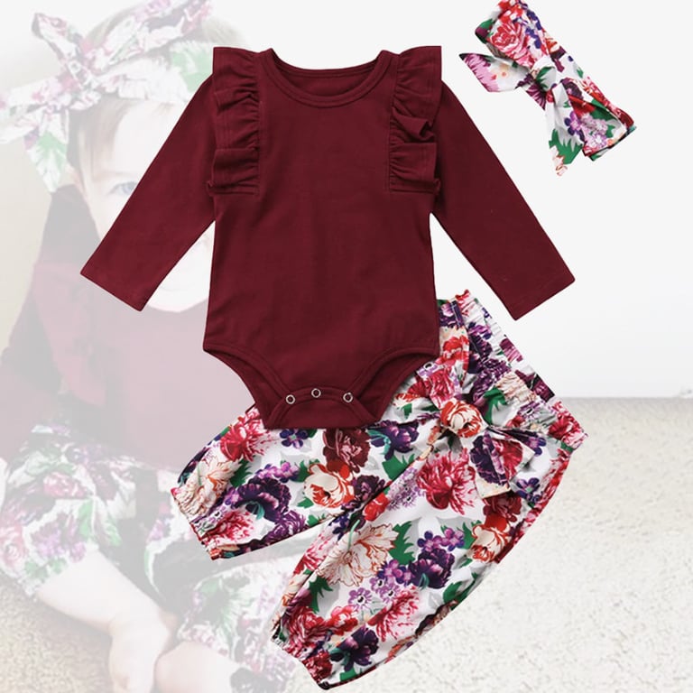 A beautiful set for an even more beautiful toddler girl. The package includes a lovely bodysuit, floral trousers, and a decorative headband.