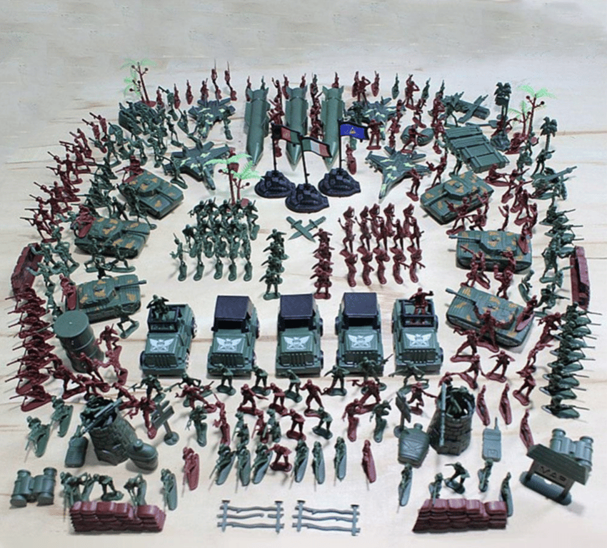 Collection of soldiers for children. A large army for a little general. The set includes soldiers, military vehicles, tanks, fighter jets, weapons, rockets,…