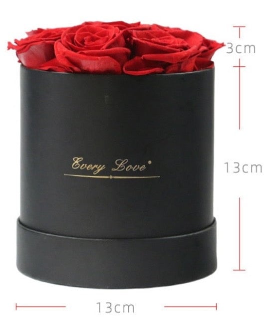 Gift box with roses in various sizes.
