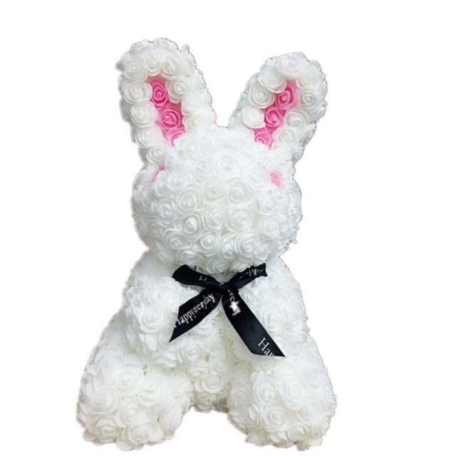 Beautiful romantic gift in the form of a bunny made of artificial roses.