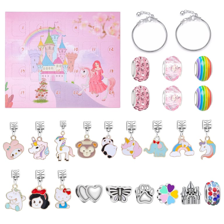 Girls' advent calendar with bracelets and beads.
