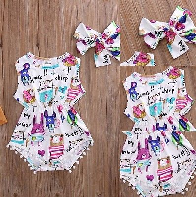 Suitable for summer or spring days. The bodysuit is decorated at the bottom with pom-poms and a headband.