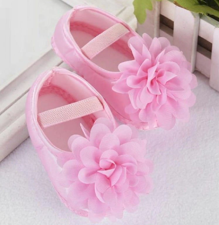Girls' ballerinas with a flower are designed for newborns and breastfeeding little fashionistas.