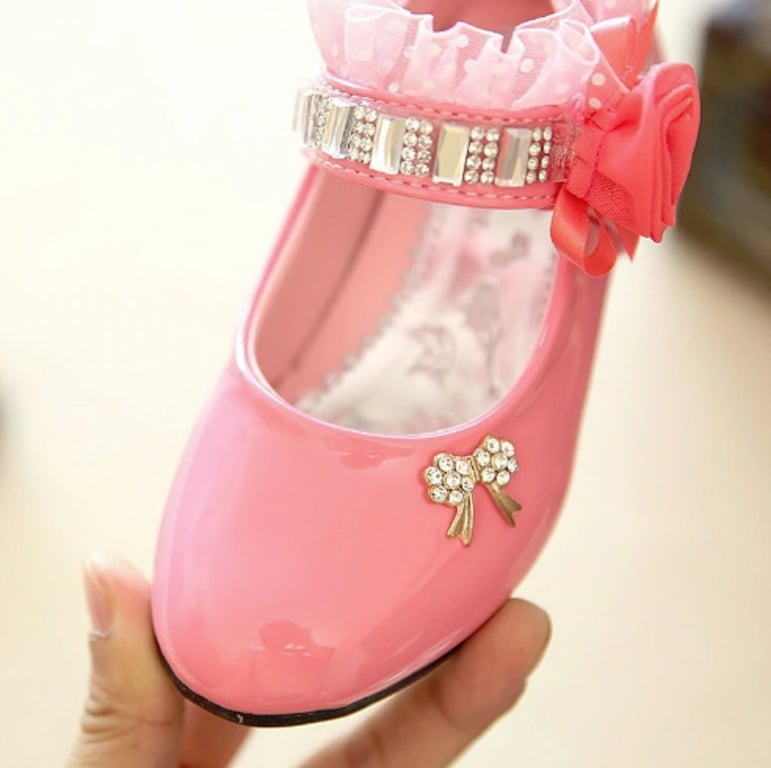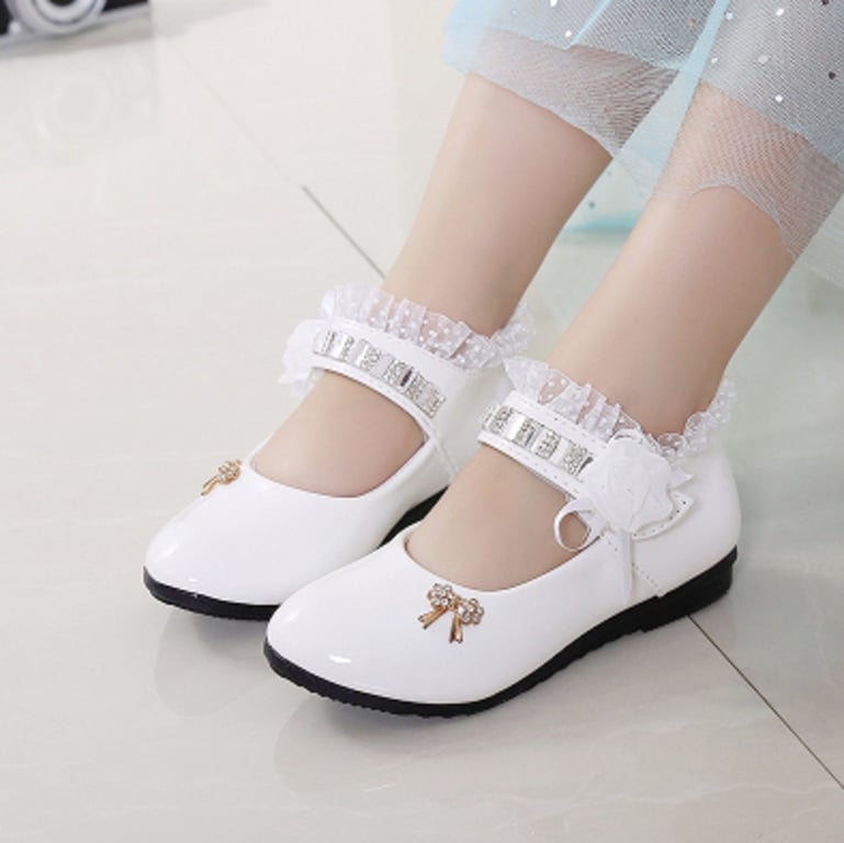 Girls' ballerinas adorned with rhinestones, lace, and a rose will be loved by all young ladies.