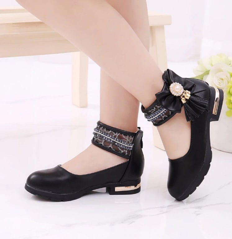 These girls' ballerinas feature a strap adorned with a bow, fringes, and a pearl.