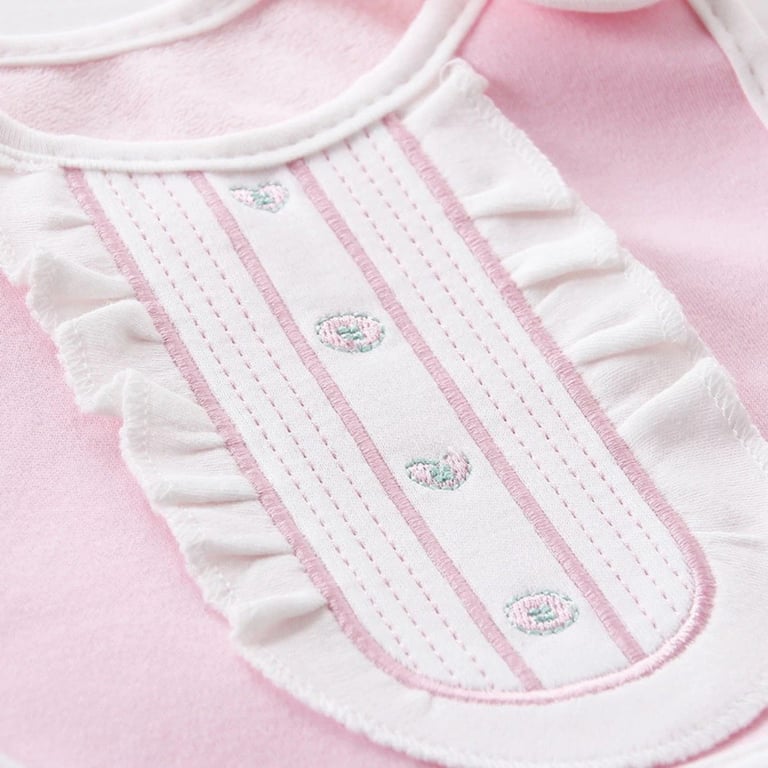 The bib is designed for girls aged 0-3 years and is waterproof.