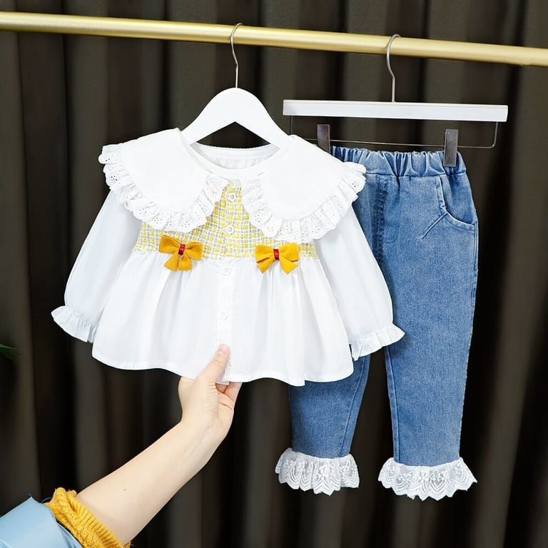 Girls' blouse and denim trousers