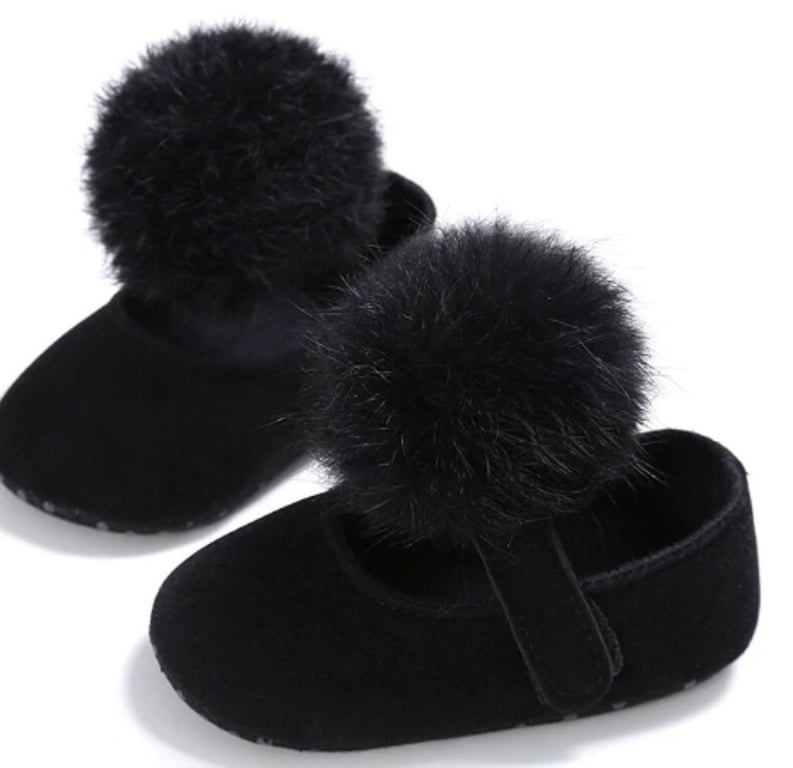 Girls' booties with a pom-pom will be a fantastic fashion accessory for newborn clothing in the pram.