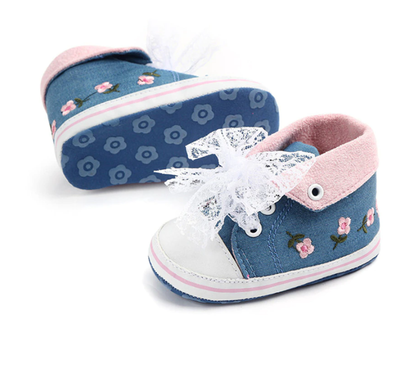 Girls' booties with embroidered flowers