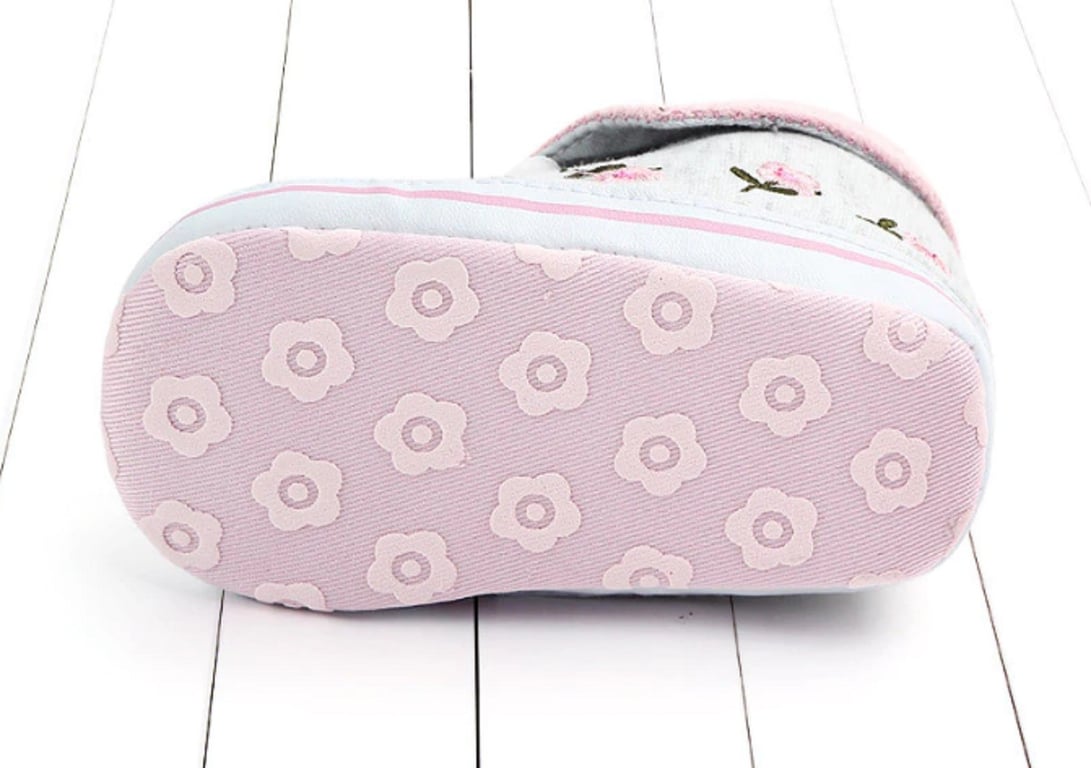 The booties have a non-slip sole that prevents little feet from slipping while practising their first steps.