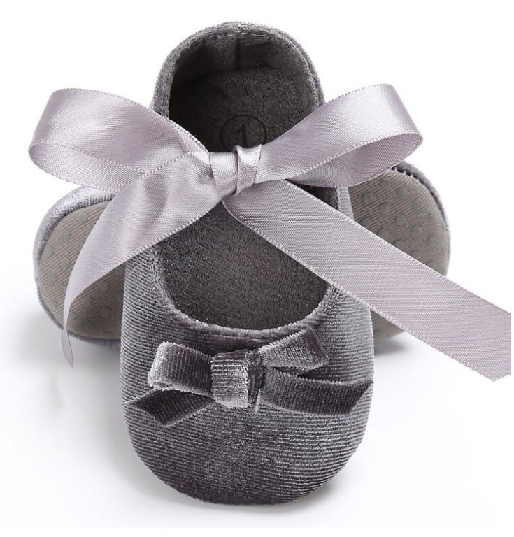 These girls' canvas booties with ribbon are very soft and extremely comfortable on little feet.