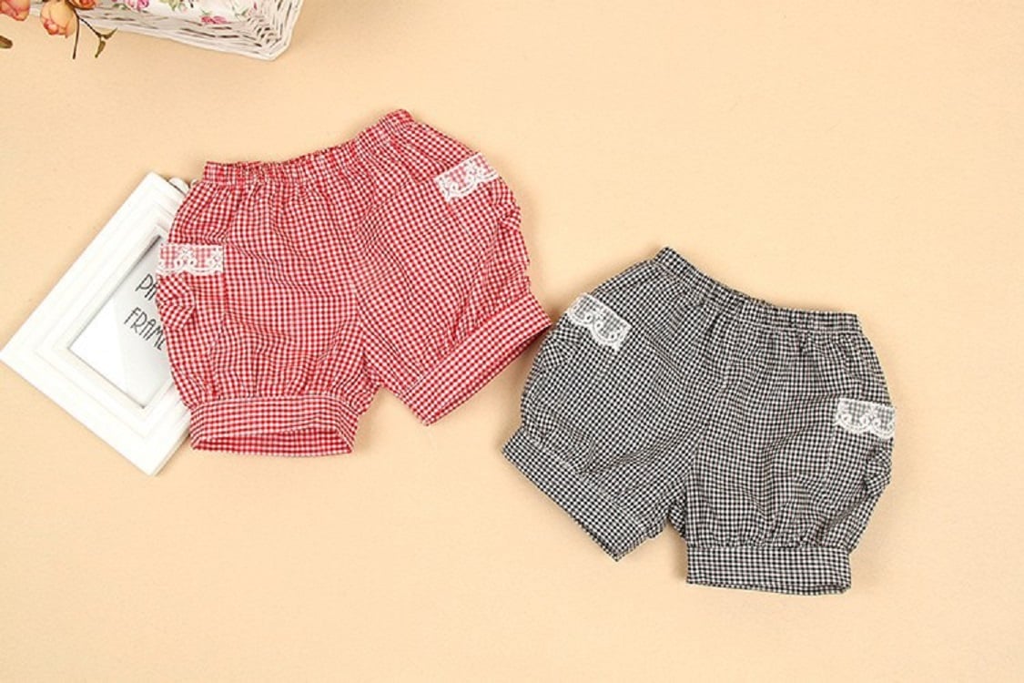 Beautiful girls' checked shorts that look very nice.