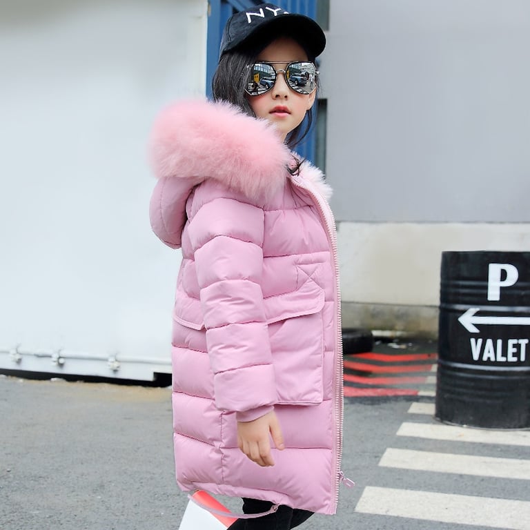 This girls' winter coat with a large fur collar will provide your girl with plenty of warmth and comfort.