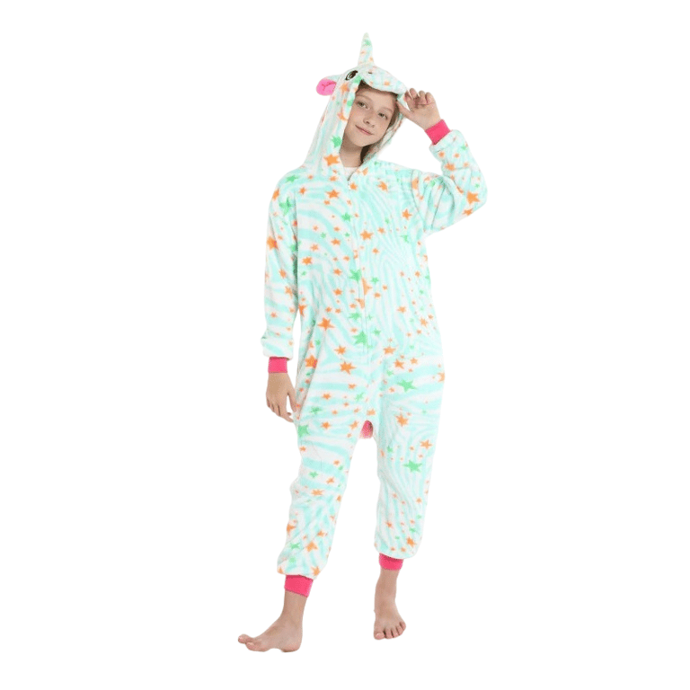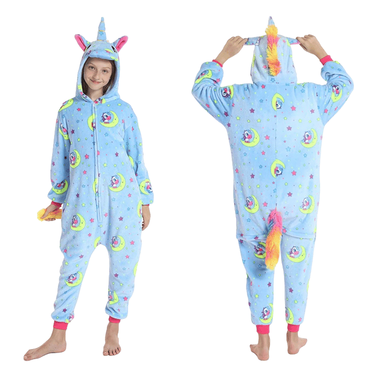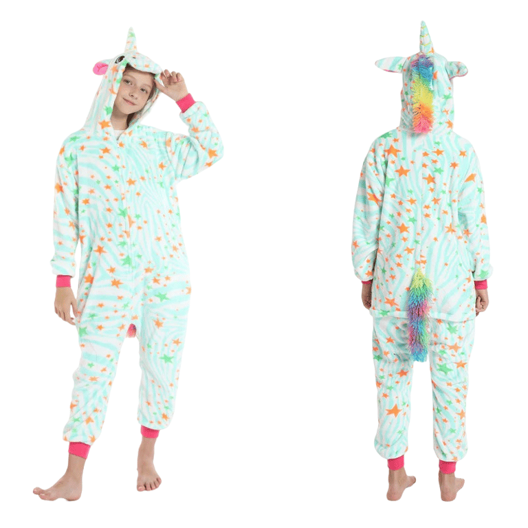 The girls' colourful unicorn onesie is made from soft and warm polyester material, ensuring your child will feel comfortable in it. The cute design is sure to be a hit with little ones (and adults too!). Whether you're looking for a Halloween costume or just fun and unique clothing, this onesie is a great choice.