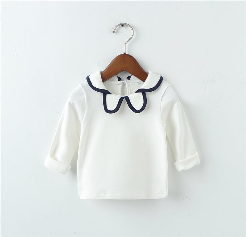 • T-shirt with long sleeves, trimmed collar with a round neckline and a button fastening at the back.