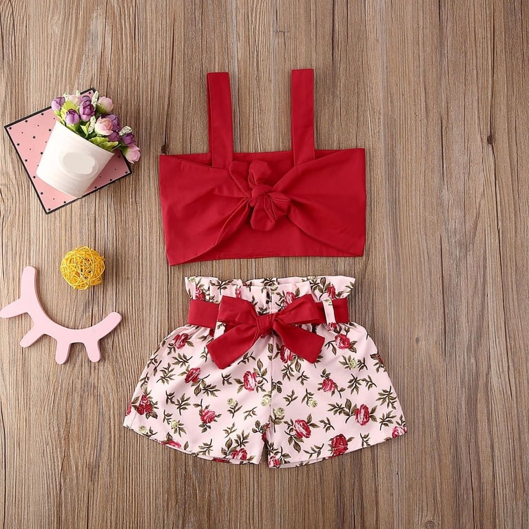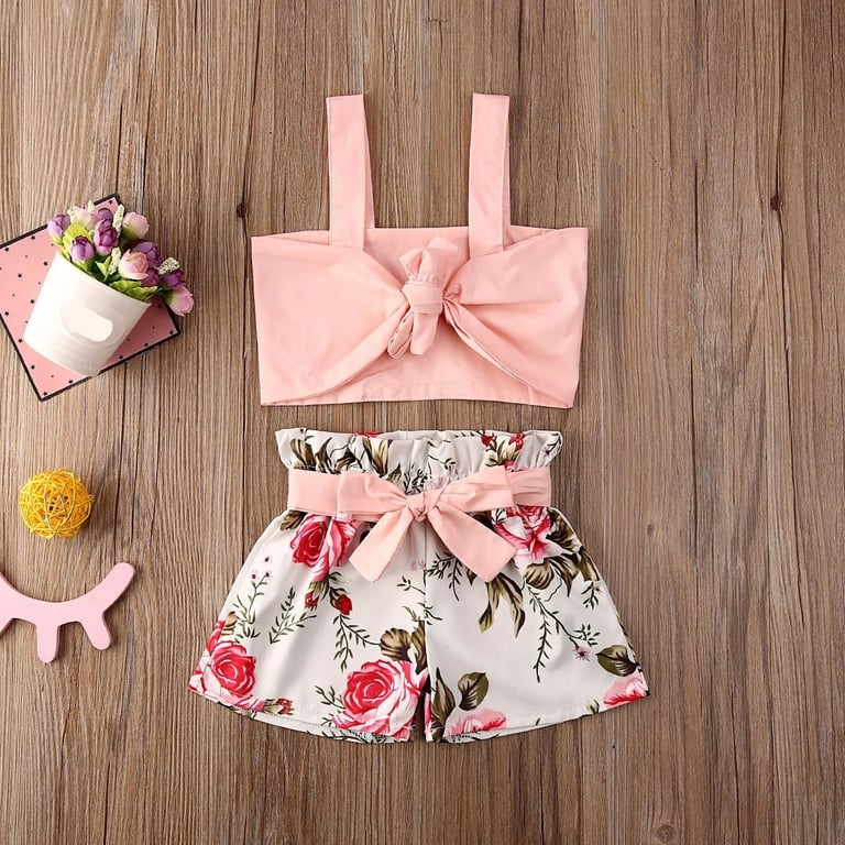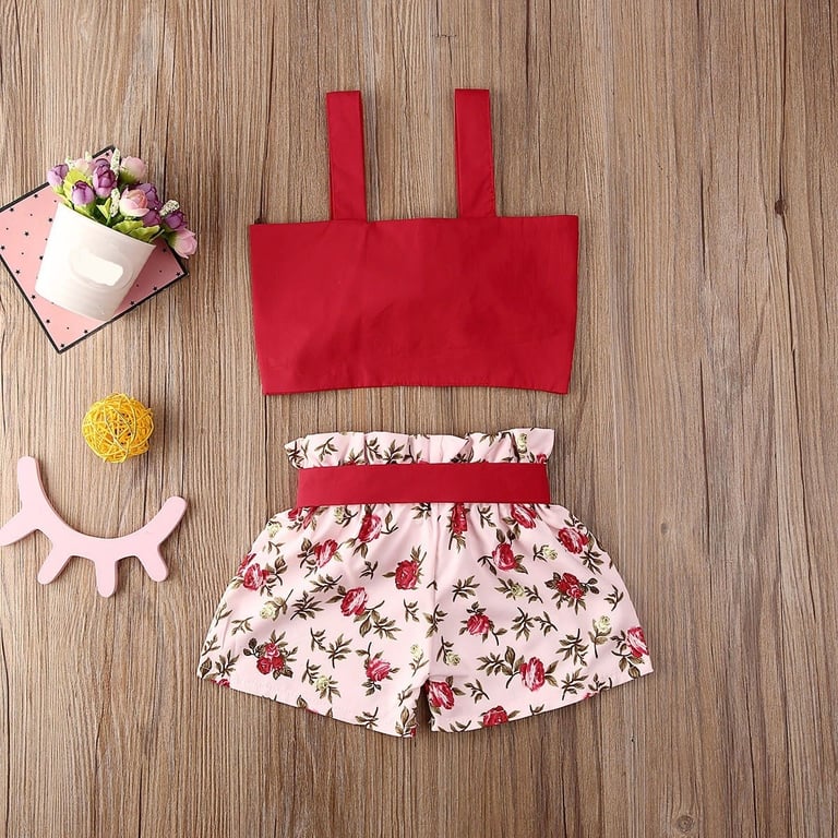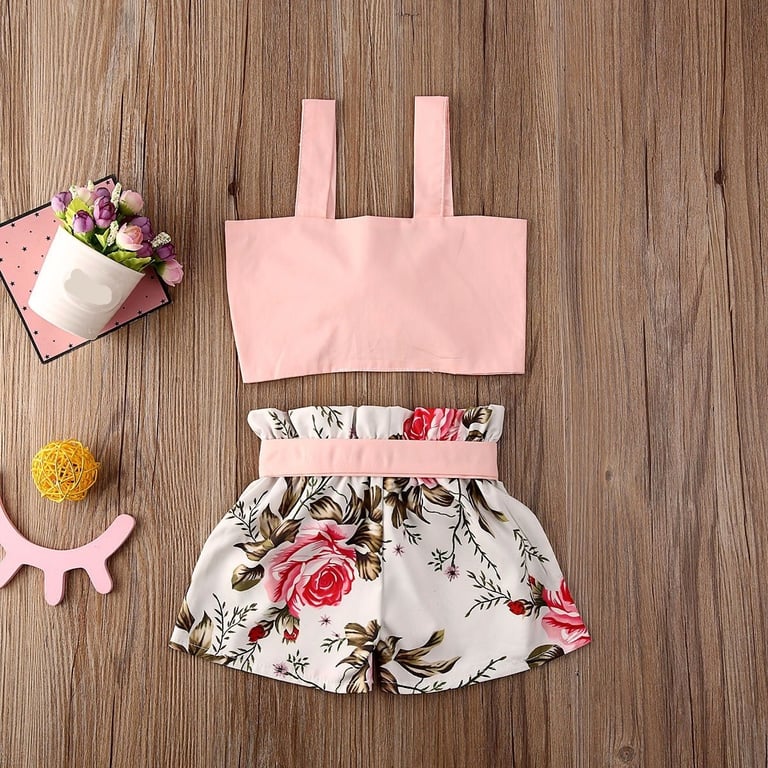 Girls' crop top and floral shorts