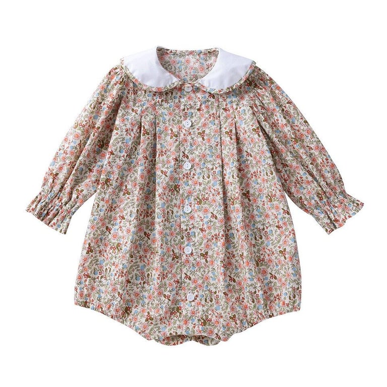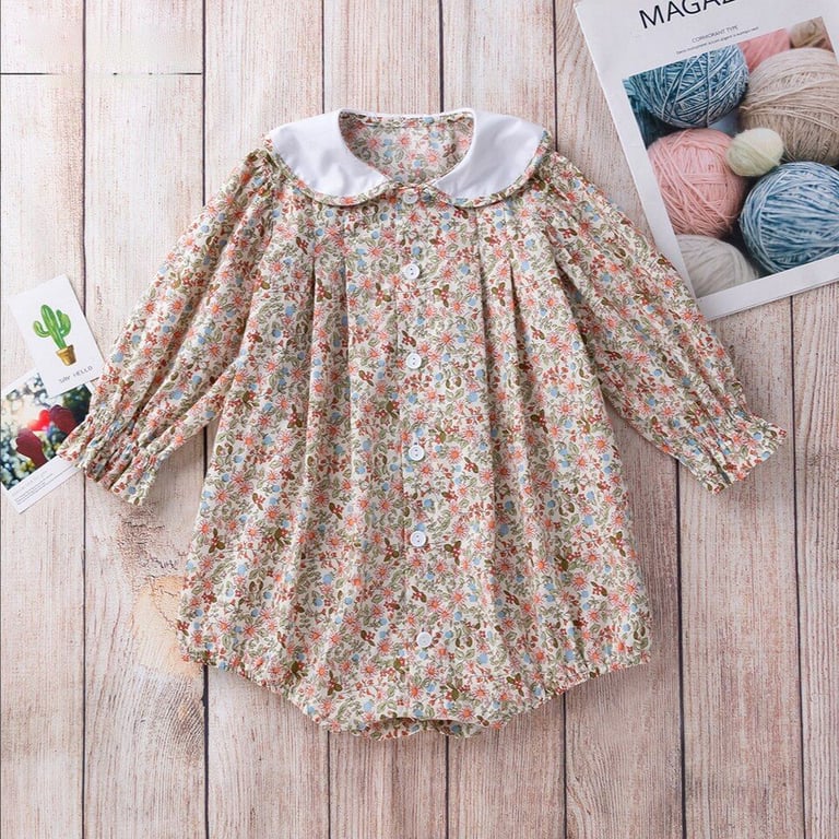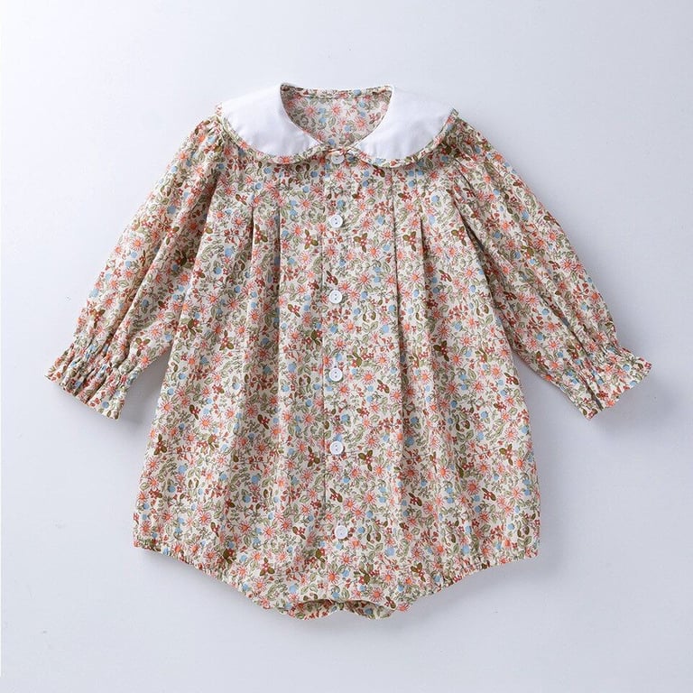 Beautiful girls' bodysuit with a floral design and collar.