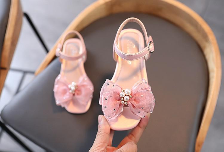 • Beautifully decorated girls' sandals complemented by a cute bow, with a Velcro fastening.
