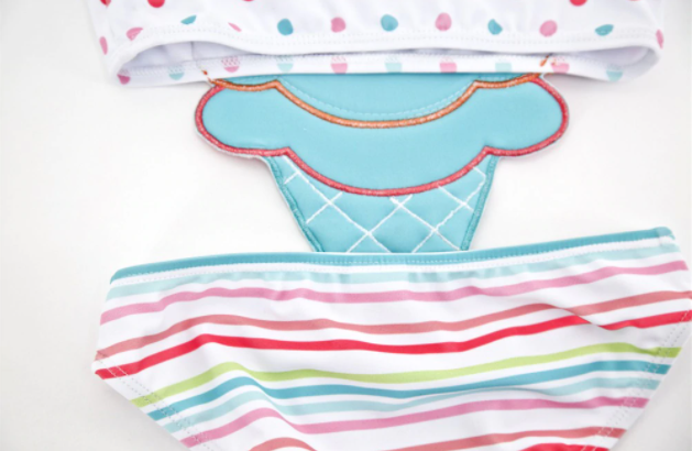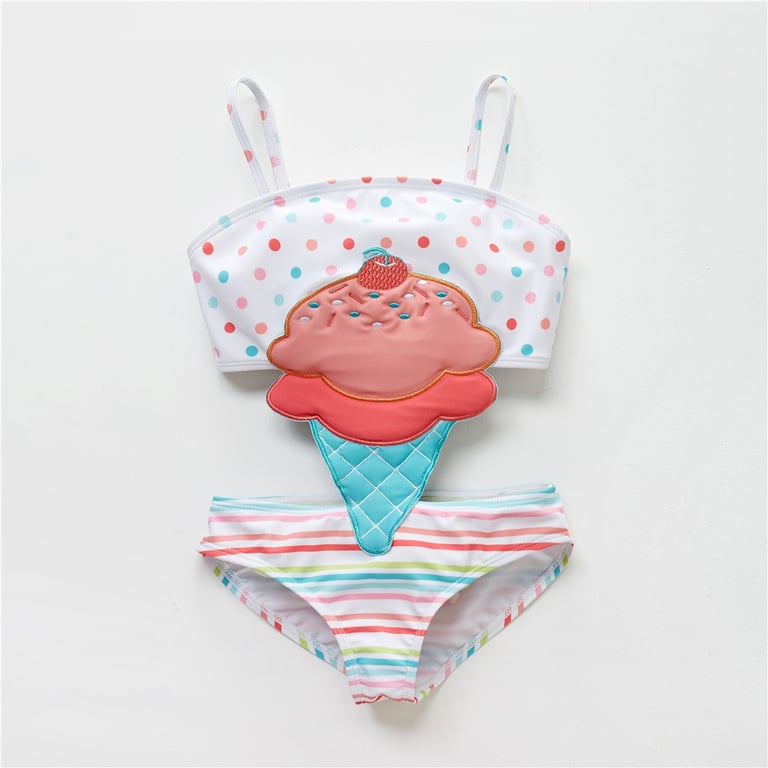 Girls' cute one-piece swimsuit with an ice cream design.