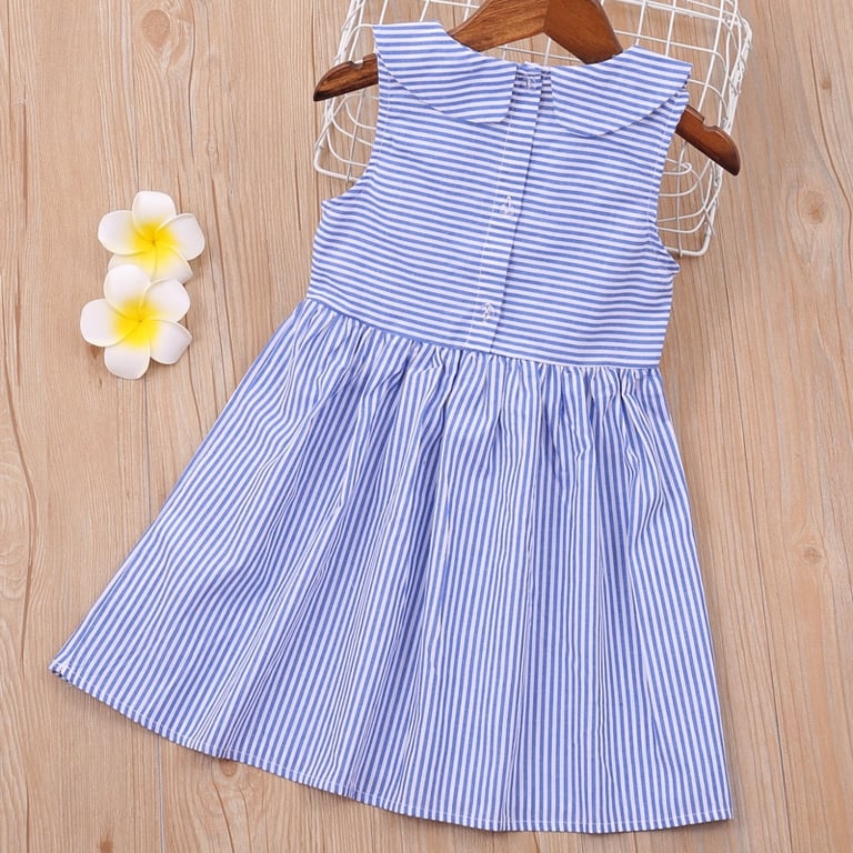 Girls' Cute Striped Dress with Bows and Collar